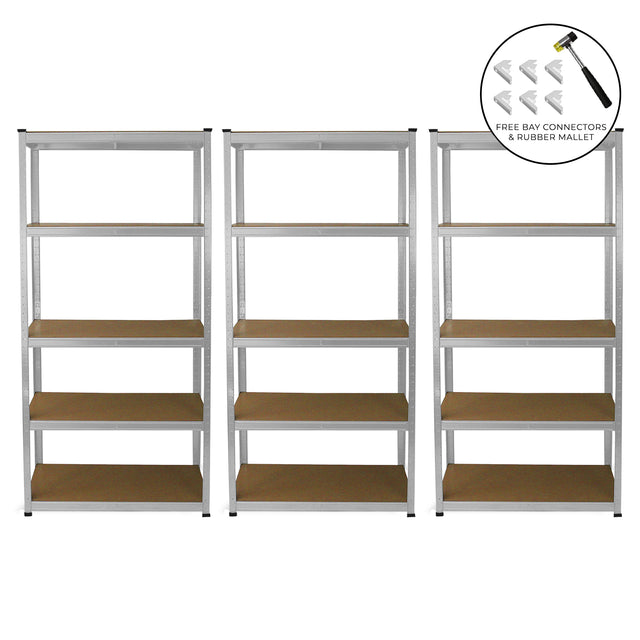 This unit offers a MASSIVE shelf capacity of 200kg and comes with a handy central bar, giving you that extra peace of mind that our hardwearing shelves will hold all your supplies. The racking comes 100% boltless, meaning that assembly of our E-Rax is effortless. All you need is a rubber mallet, which comes FREE with this bundle. The racks come with FREE bay connectors, which can be used to connect units together.
