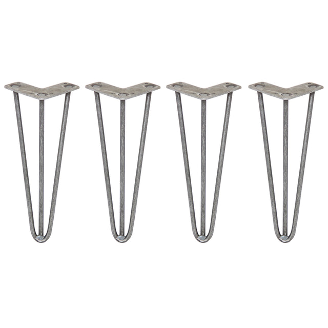 4 x 12" Hairpin Legs - 3 Prong - 10mm - Raw Steel