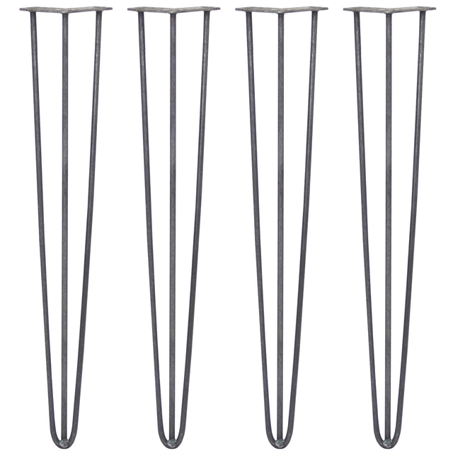 4 x 28" Hairpin Legs - 3 Prong - 10mm - Raw Steel