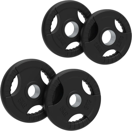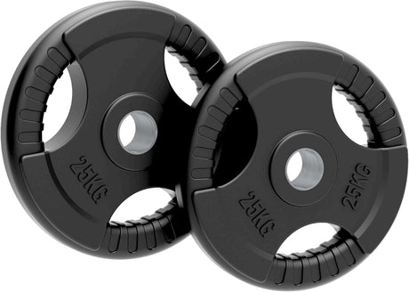2 x 25kg Olympic Tri-Grip Rubber Weight Black Plates