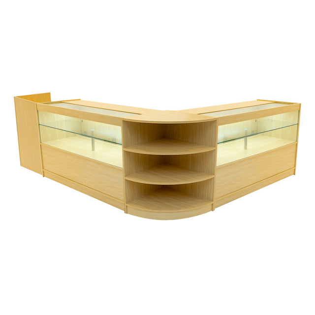 Create a refined, professional retail display with this premium counter bundle, featuring two C1500 LED display counters, one LM60 curved corner counter and a TB60 till counter – the perfect combination of style, functionality, and layout flexibility for any modern retail environment.