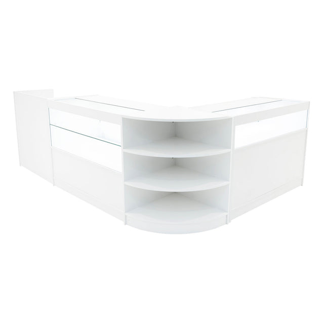 Bringing a modern, professional edge to any retail space, this collection of white LED shop counters offers a stylish and practical solution for showcasing merchandise.