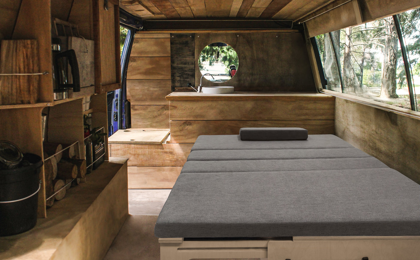 For ultimate comfort, the sofa features 8cm thick high-density sponge cushions that ensure support whether you're lounging or sleeping. Upholstered in washable linen covers in a sleek grey shade, the cushions combine modern style with easy maintenance to keep your camper van interior looking its best.