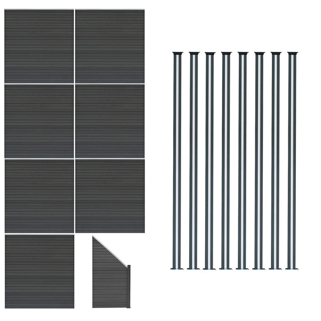Composite Fence Panels x 7, Angled Piece & LED Posts x 8 - Grey