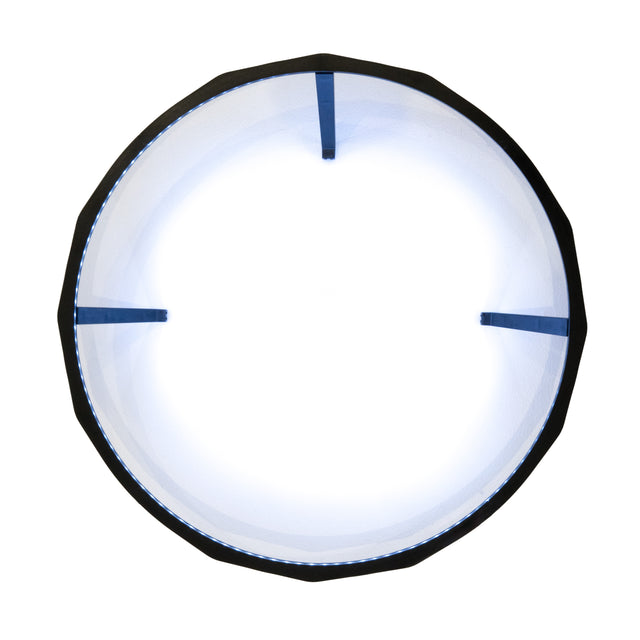 The ring light mounts easily around any standard dartboard, with a wide frame that enhances visibility without obstructing your view of the board, giving you a clear sightline to every scoring segment. The surround is supported by sturdy legs that form a strong, stable structure, ensuring it stays securely in place during play while maintaining a professional, polished look.