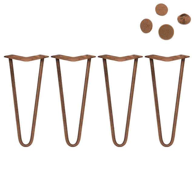 4 x 12" Hairpin Legs - 2 Prong - 10mm - Antique Copper