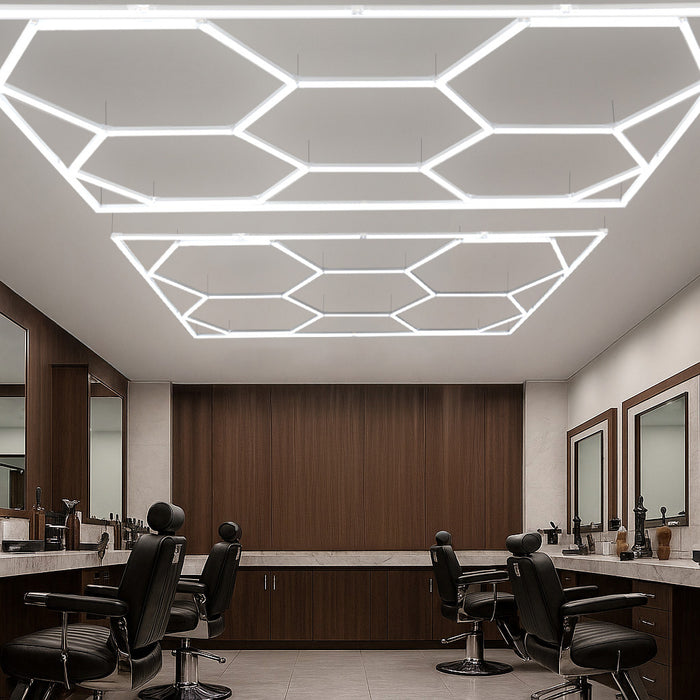 Perfect for enhancing workshops, studios, garages and more, this innovative lighting solution delivers brilliant 6500K pure white light across ten honeycomb-shaped LED panels, complete with a stylish border for a clean, modern finish.