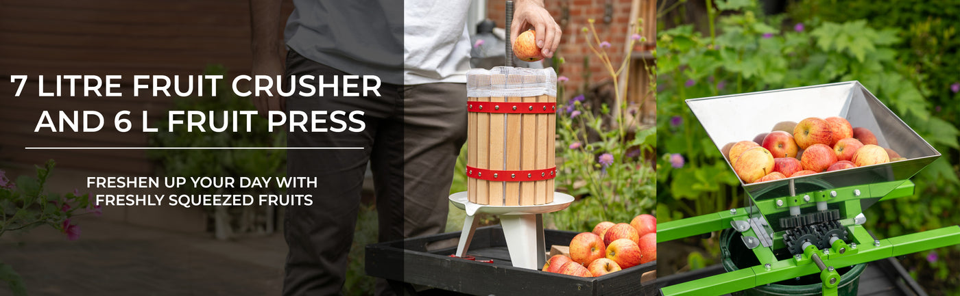 Elevate your home juicing and cider making with the KuKoo 6 Litre Fruit Press and 7 Litre Fruit Crusher bundle.