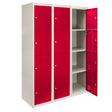 3 x Metal Storage Lockers - Four Doors, Red - Flatpack