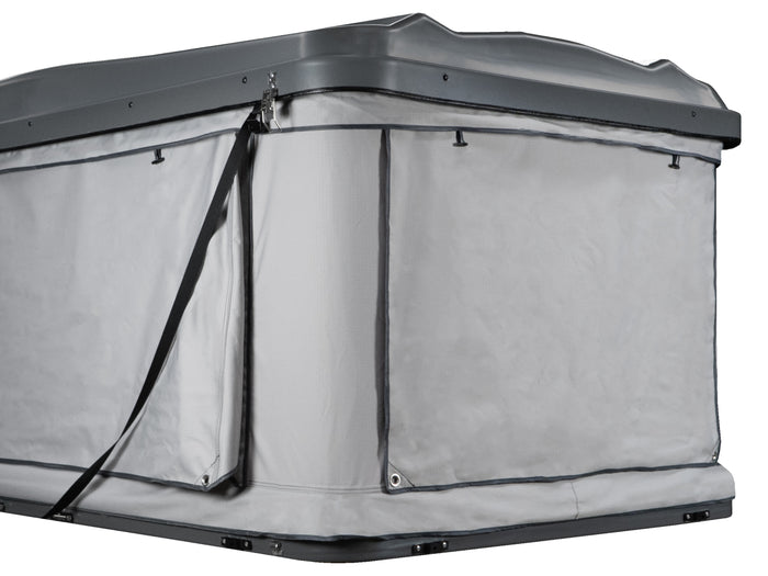 Crafted from high-quality materials, this tent is both durable and robust. With UV-protected and breathable fabric, waterproof up to 3000mm, it guarantees warmth and dryness in any weather conditions. Supported by a sturdy aluminium frame and a hard top roof, it ensures enhanced security and strength for a comfortable and safe outdoor experience. The streamlined and aerodynamic design of the hard shell not only elevates the appearance of your vehicle but also enhances its on-road performance.