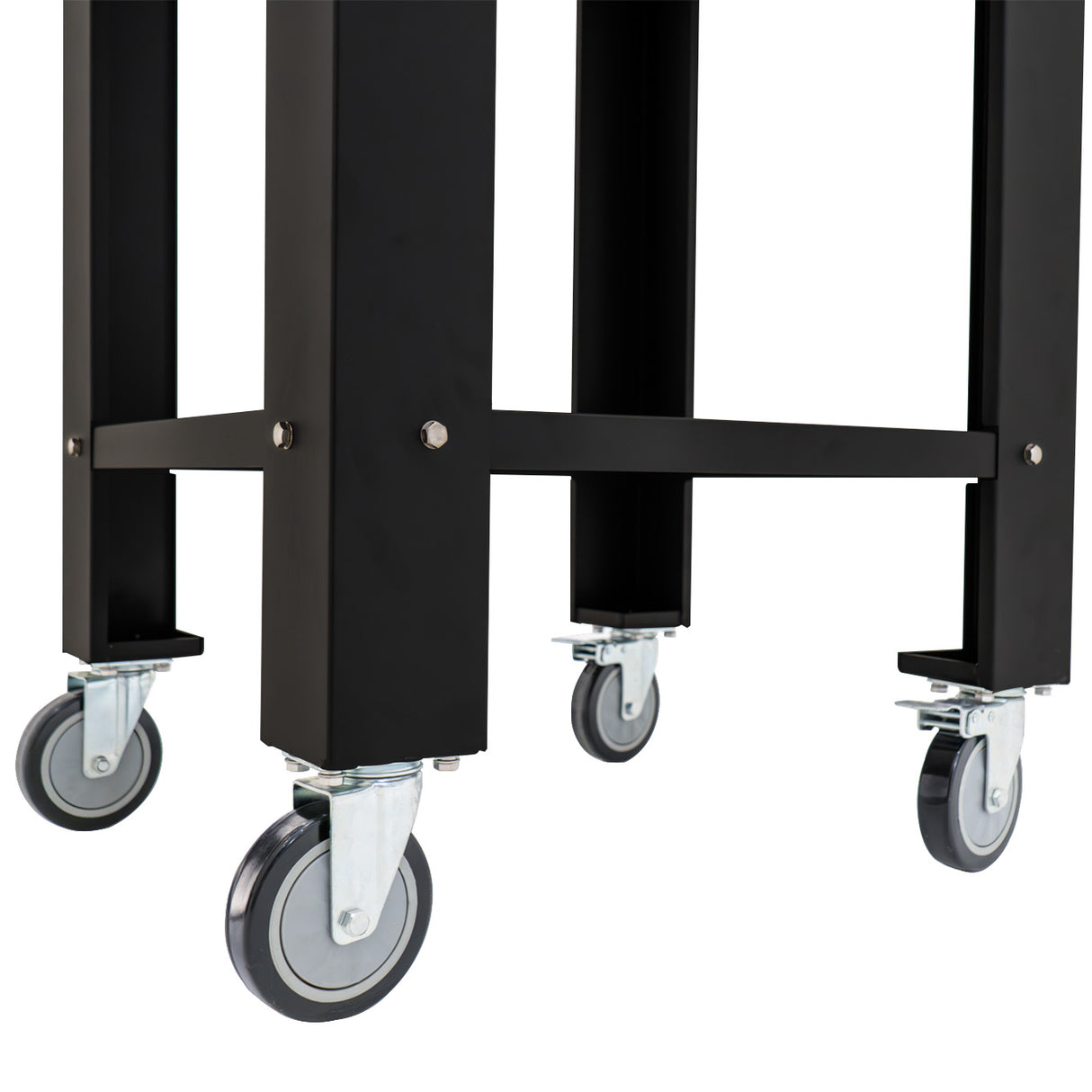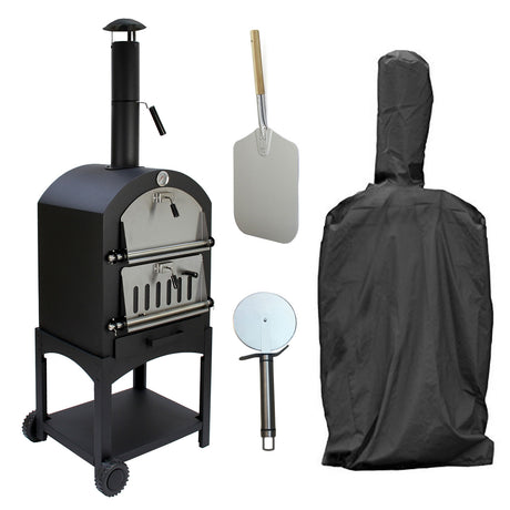 Constructed from high-quality, heavy-duty steel, this oven is designed to withstand frequent use and provide long-lasting performance. The wood handle is heat-resistant, ensuring your safety while handling the oven. With sturdy wheels, you can effortlessly move this pizza oven around your yard or patio to find the ideal cooking spot. The included rain cover protects your oven from the elements, extending its lifespan.