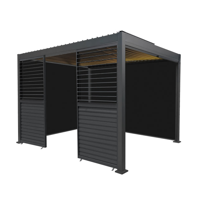 Aluminium Pergola With Anthracite Blinds, 2 x Side Panels & LED Lights - 3m x 3m