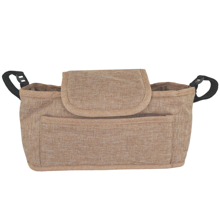 Crafted from durable, linen fabric, the caddy bag is built to withstand daily outings, while its 2kg weight capacity ensures you can carry everything you need without any bulk. The thoughtfully designed inner elastic cup pouch keeps your drinks secure and easily accessible, and the front pocket provides additional space for small items like keys, treats, or your phone.
