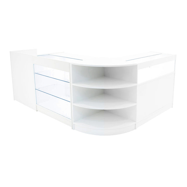 Bringing a modern, professional edge to any retail space, this collection of white LED shop counters offers a stylish and practical solution for showcasing merchandise.