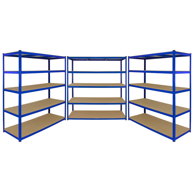 Monster Racking T-Rax 3 x Extra Wide Storage Shelves, Blue, 160cm W, 60cm D