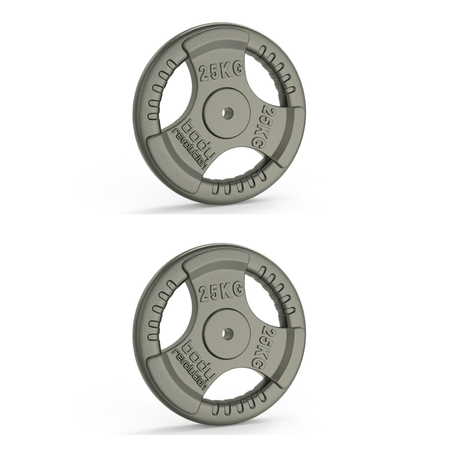 2x 25kg Cast Iron Weight Plates - 1" Standard Tri Grip