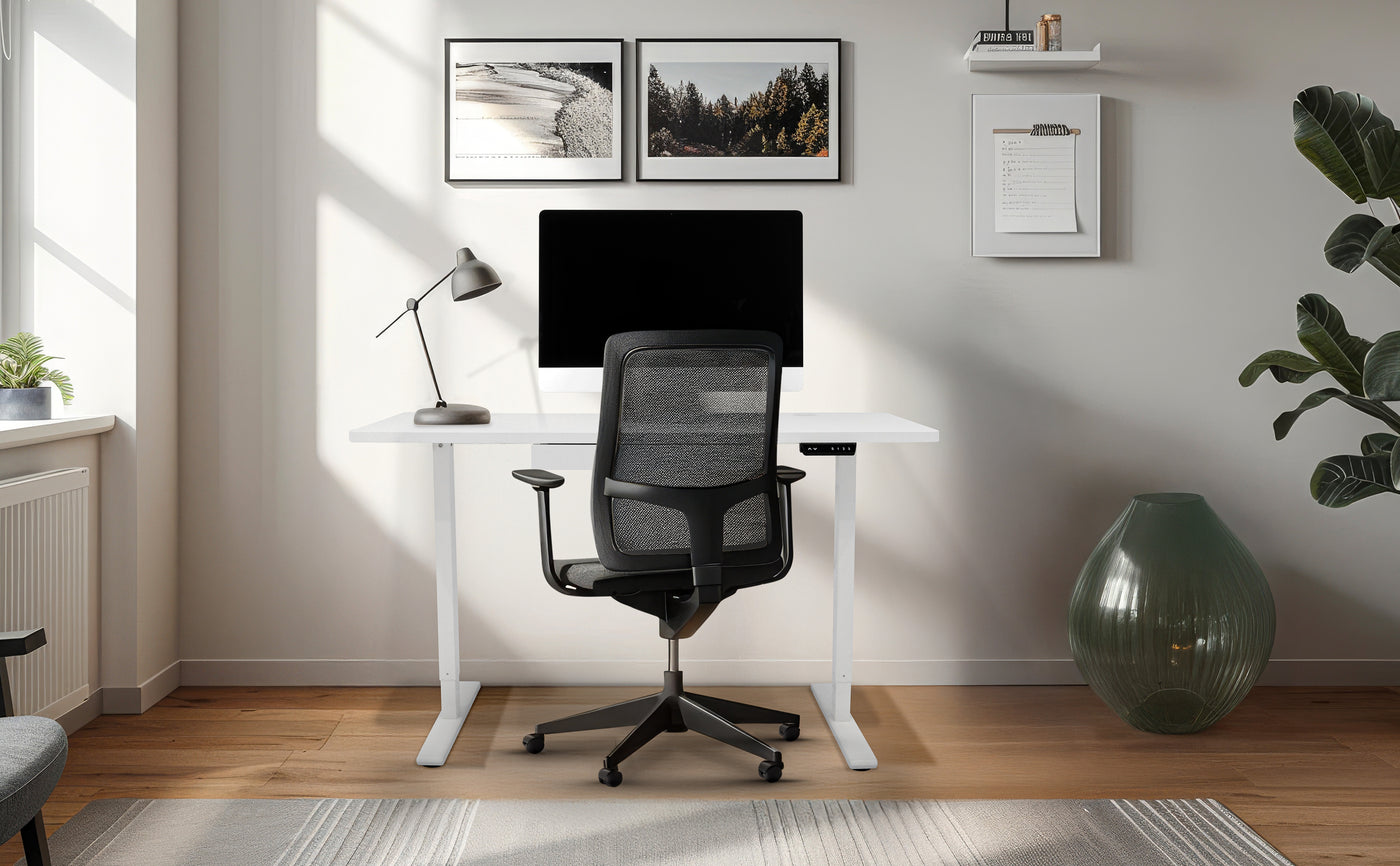 Elevate your workspace with this sleek electric standing desk, a perfect harmony of modern design and exceptional functionality.