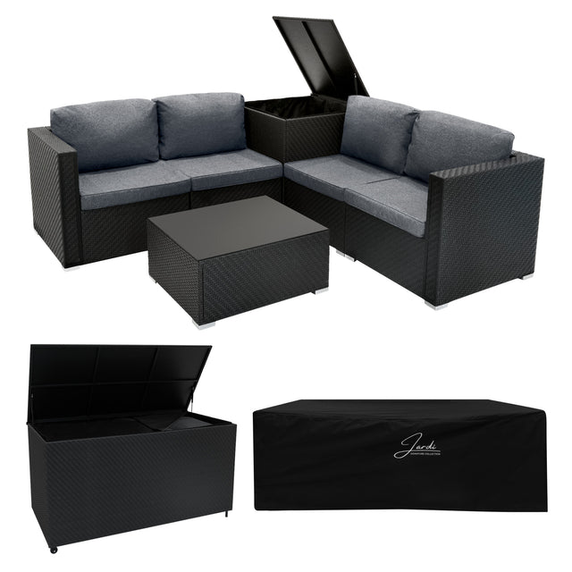 Rattan Modular 6 Piece Furniture Set & 996L Storage Box – Black