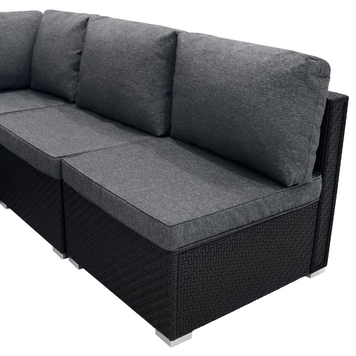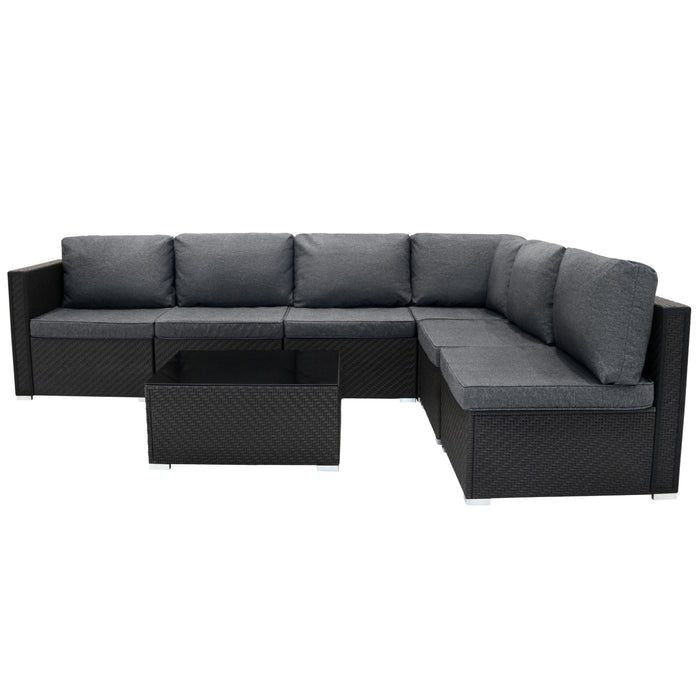 Rattan Modular 7 Piece Furniture Set - Black