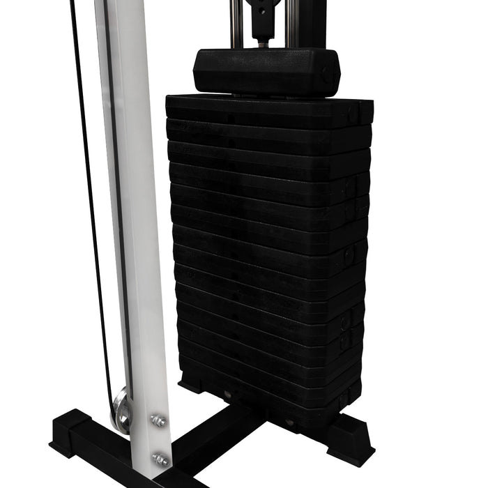 Engineered from heavy-duty steel and fitted with dual nylon pulleys, this machine ensures smooth, consistent movement with every rep. The adjustable height system, with 14cm increments across its 185cm frame, gives you the freedom to perform a variety of exercises with perfect positioning.