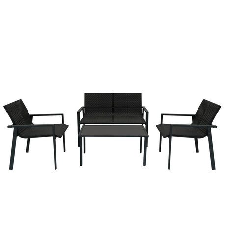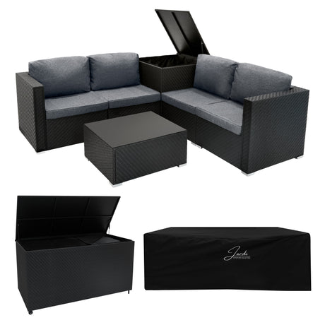 Rattan Modular 7 Piece Furniture Set & 996L Storage Box - Black