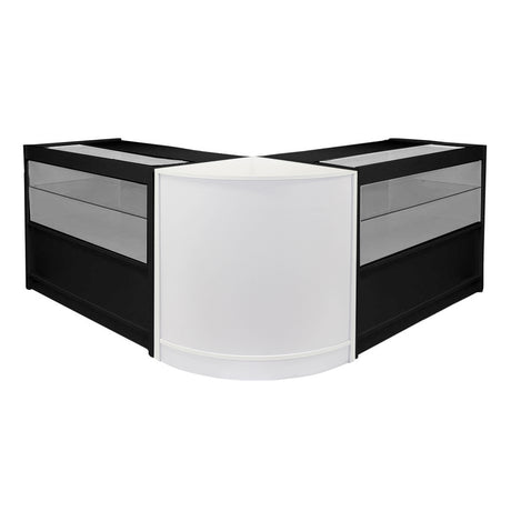 Available in black, white, or maple finishes, each counter works beautifully as a standalone feature or in combination to create a seamless run. From curved corner units that maximise floor space, to LED-lit glass showcases that make products shine, to compact till blocks and versatile straight counters, our range adapts to your shop layout and customer flow.
